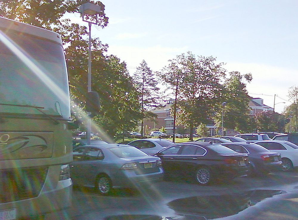 While I have been told there is no official participation by Solaris in parking arrangements, readers alerted me last night that there was at least one RV parked overnight in the Park Avenue lot. Checking at 8 AM this morning, there were about forty cars parked in the lot (some may be Solaris employees manning the emergency services tent, but I'll bet not all), and I saw a black minivan loading up passengers, presumably to shuttle to PCC. Though some have told me they are planning to park in a Muhlenberg lot and walk over, you should be aware you could be towed if you park in any of the Muhlenberg Campus lots.