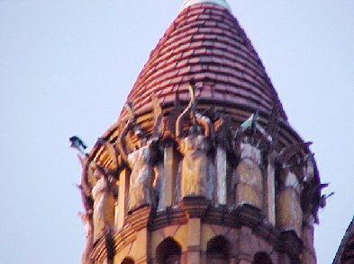 Terra cotta angels atop Seventh Day Baptist Church summon all to the Judgment Day. (Photo by Dan Damon) |